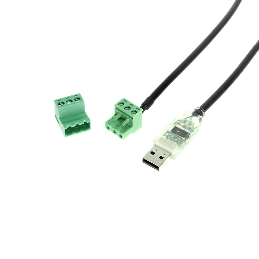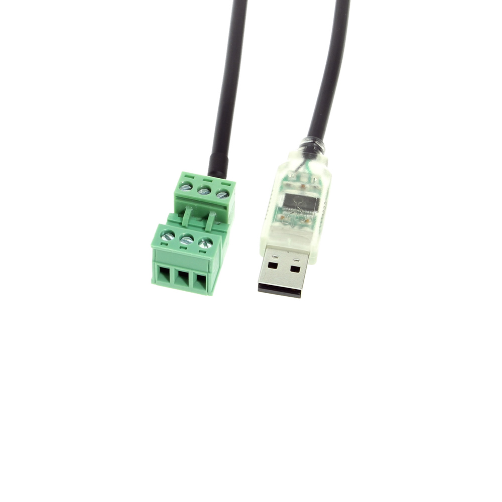 | USB-RS485-CC-LLL-CU-X | USB 到具有RS485 级UART信号的UART电缆。 C =电缆颜色(B黑色或T 透明), U = USB连接器颜色(T 透明或B黑色) X =电压(P为5V,G为0V) | CC =连接器 描述。 | llll =电缆长度 。 |
