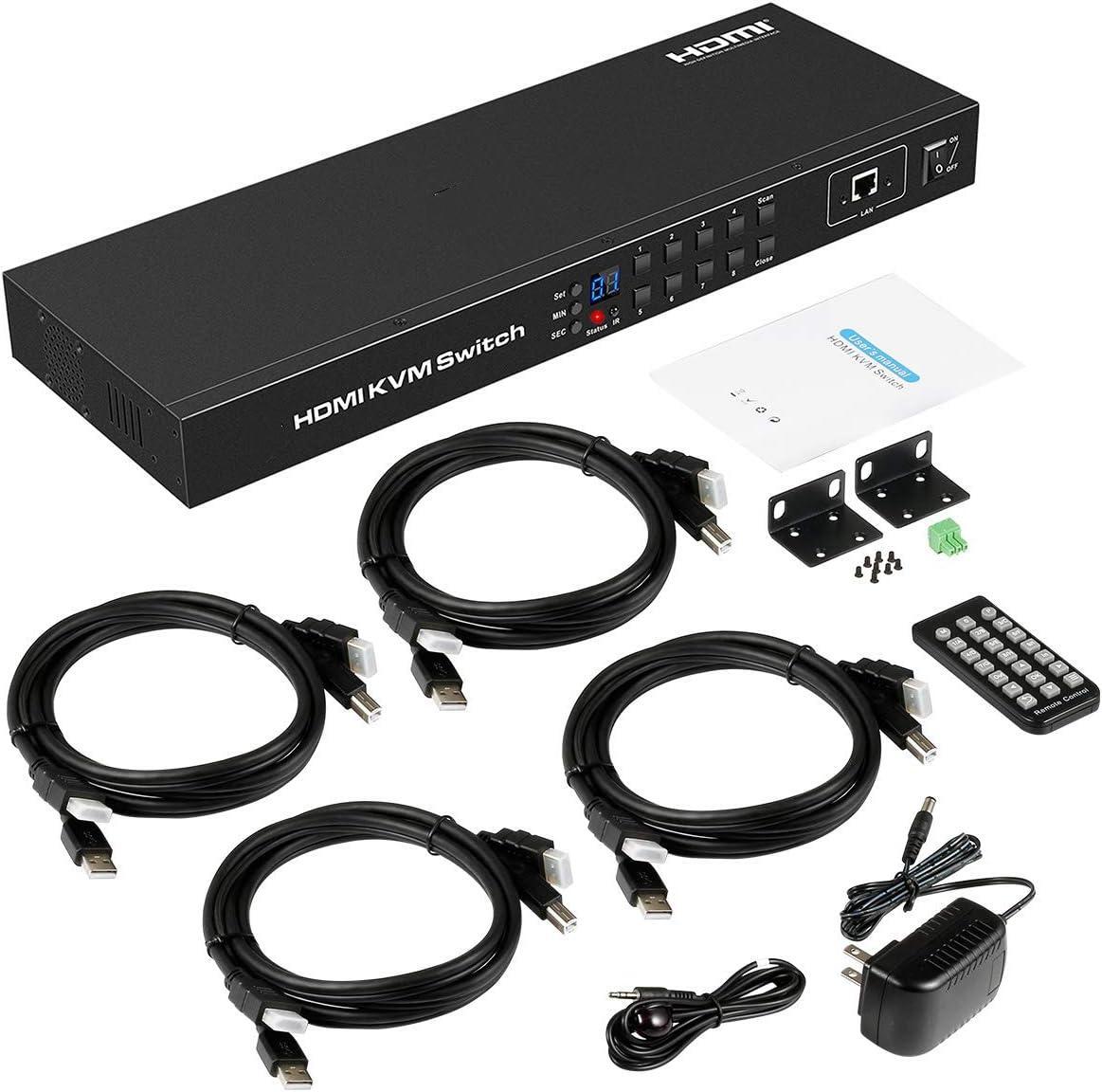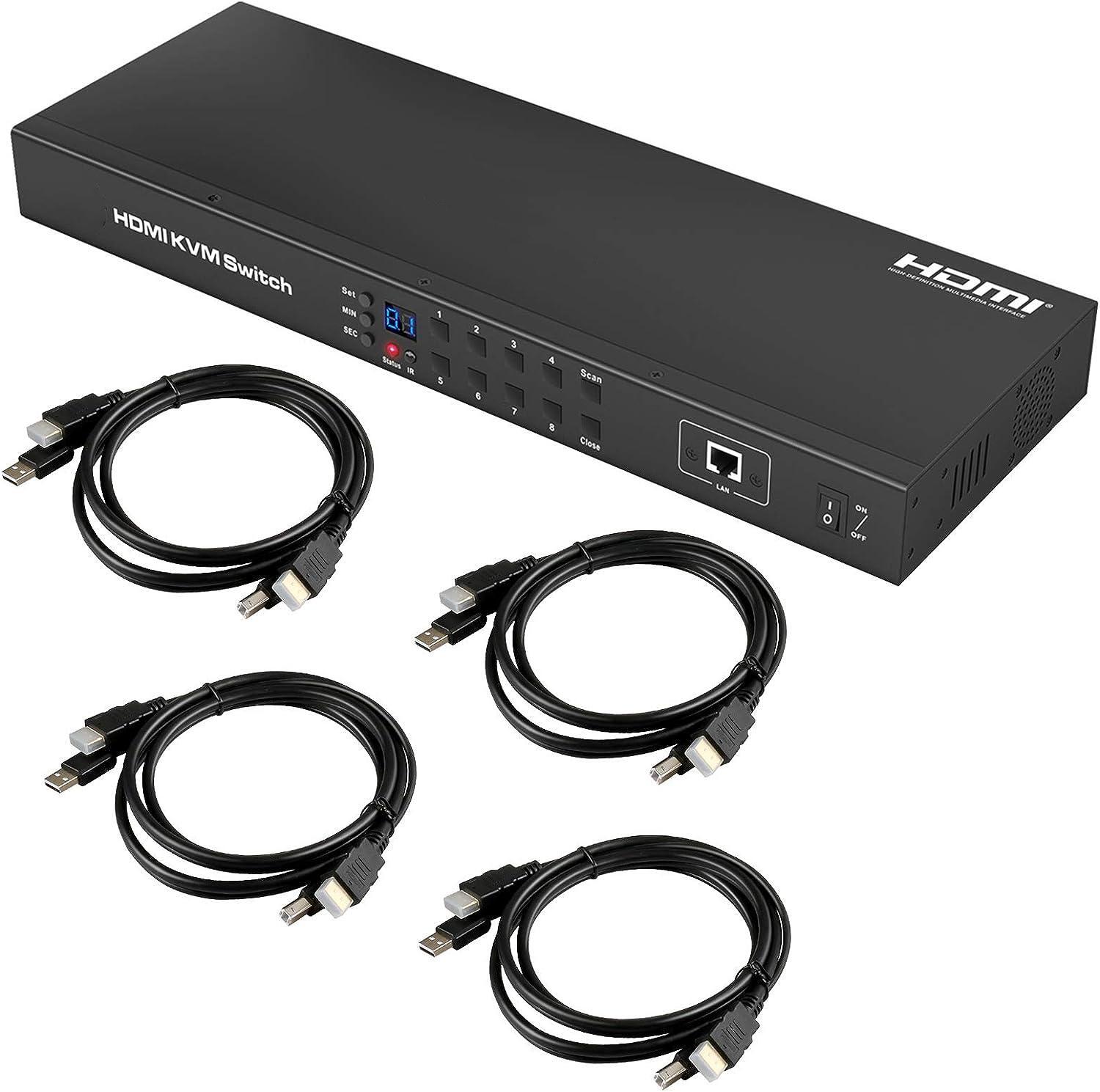 使用此升级的8端口HDMI KVM开关迈出巨大的一步,旨在为您提供更具包容性和方便的用途。该8英寸至1输出的HDMI KVM开关旨在控制1-8个计算机,服务器,DVR/NVR,笔记本电脑等,以及一组USB键盘,USB鼠标和监视器。使用此HDMI KVM开关,您可以使用键盘热键,按钮,IR遥控器,鼠标手势,LAN,RS232和自动扫描在PC之间进行切换。