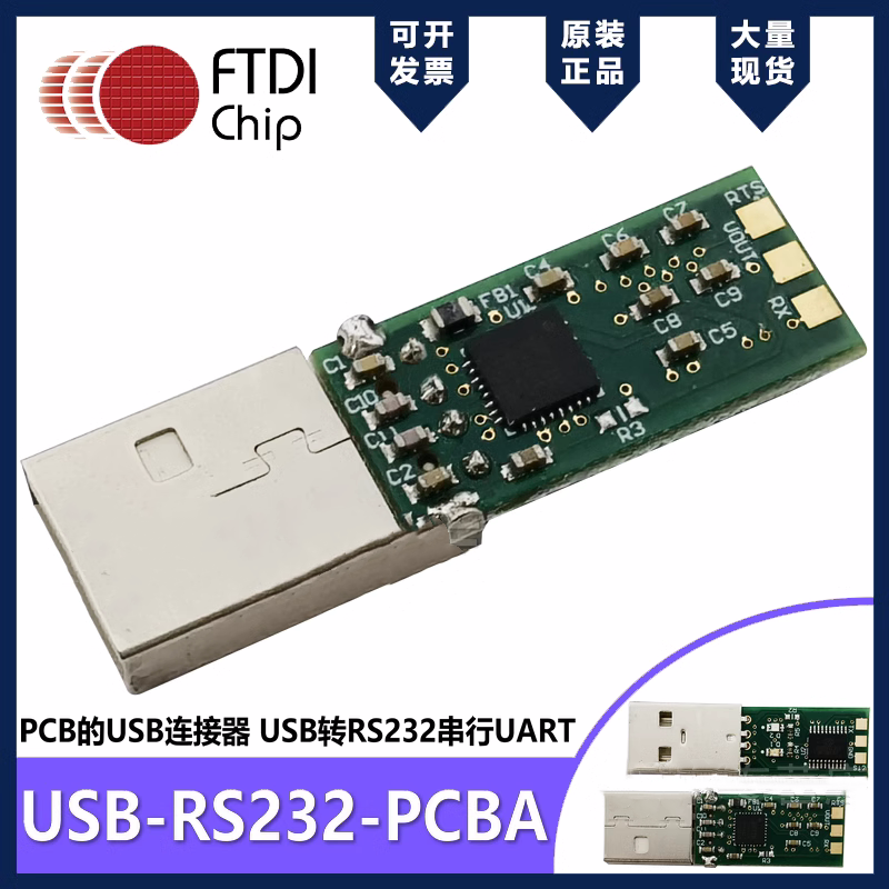 USB-RS232-PCBA转换器使用简单的USB A连接器和PCB为RS232串行界面提供了USB,以便于设计或作为转换器电缆的基础。